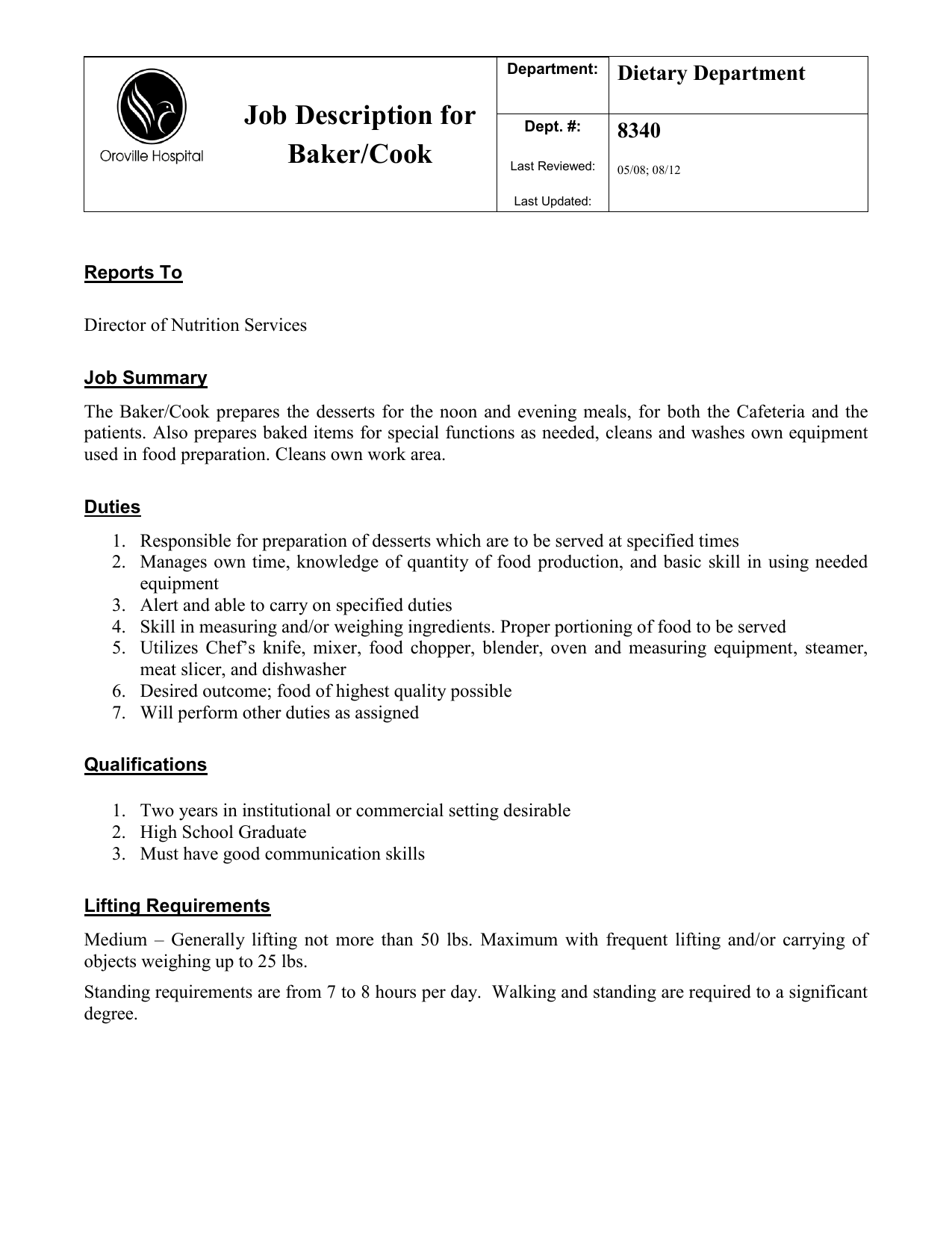 Cooks food in quantities according to . Examples of duties common to all levels in series: Cook #1 would be your most experienced and skilled, and line cooks, . · 2) turn or stir foods to ensure even cooking. Description of major duties and responsibilities: